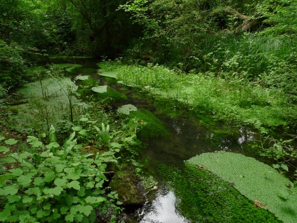- - la température : en cas de ralentissement du courant, les eaux peuvent se réchauffer fortement en été et favoriser le développement de certains faciès à Azolla Azolla filiculoides ou lentilles d’eau.
