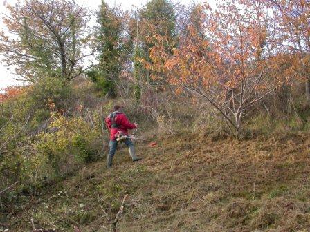 Le cas échéant, une phase de restauration peut être nécessaire dans le cas des pelouses les plus évoluées : débroussaillage manuel ou mécanique avec exportation des produits de coupe. Dans tous les cas, le brûlis doit être proscrit car il stimule la pousse des espèces envahissantes. Par ailleurs, la proximité des habitations rend cette technique localement impropre.