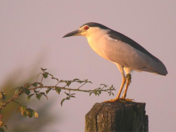 - Description : Héron trapu de petite taille, le Bihoreau se caractérise tout d’abord par sa silhouette : tête rentrée dans les épaules, pattes relativement courtes. L’adulte est gris avec le dos et le dessus de la tête noir. Les pattes sont jaunâtres, l’œil rouge et la nuque ornée de fines aigrettes blanches. Les jeunes sont entièrement brunâtres, plus ou moins ponctués de taches pâles selon l’âge.