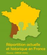 espèce en forte régression en France qui n’est plus connue aujourd’hui qu’en Poitou-Charentes (Charente et Charente-Maritime) et en Aquitaine.Carte (Muséum national d’Histoire naturelle [Ed]. 2003-2006 . Inventaire national du Patrimoine naturel)